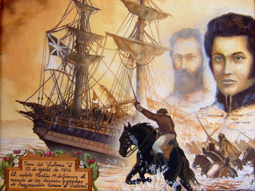 Justine, la embarcación que tomó Güemes a caballo, bajo las ódenes de Santiago de Liniers y Juan M. Pueyrredón.